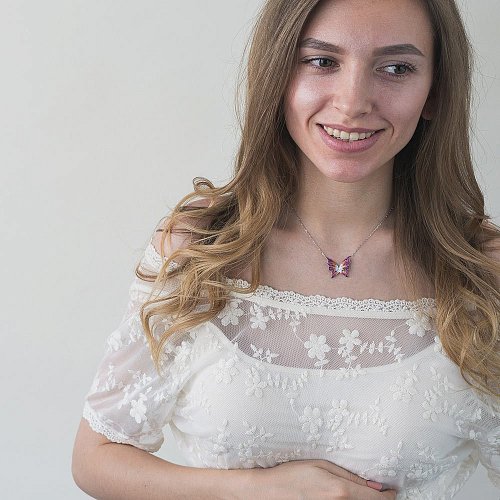 Срібне кольє Метелик з кольоровими фіанітами 18534