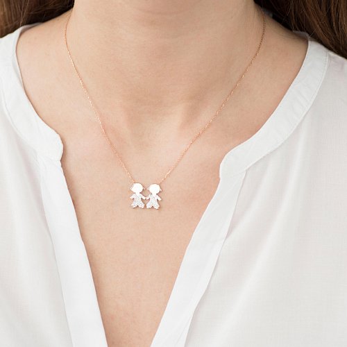 Золоте кольє "Хлопчик і дівчинка" (фіаніти) кол01217