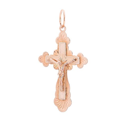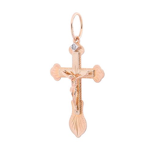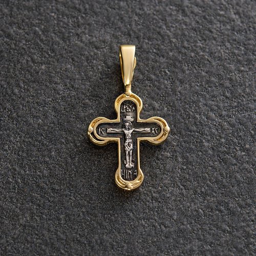 Срібний дитячий хрестик "Розп'яття. Молитва Животворчому Хресту" з позолотою 131467