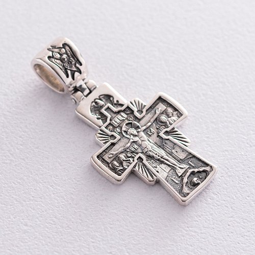 Срібний православний хрест "Розп'яття", молитва "Спаси і збережи" (чорніння) 131462
