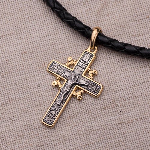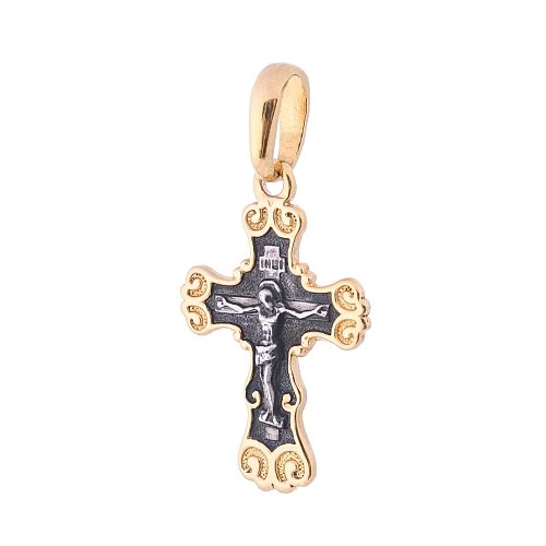 Золотий православний хрест "Розп'яття. Спаси і Збережи" (емаль) 210100E