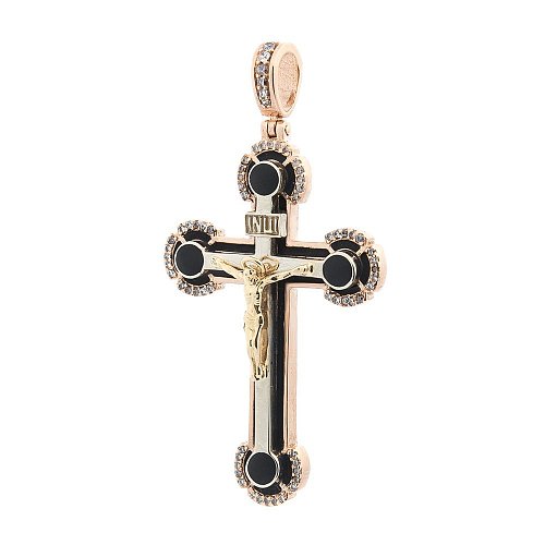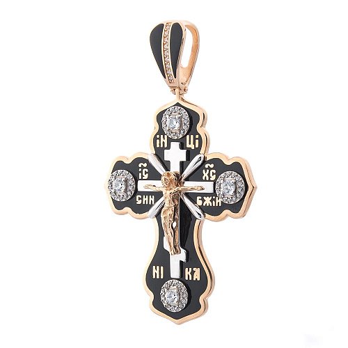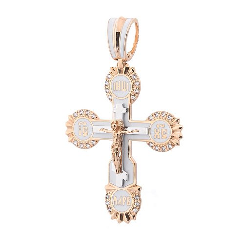 Золотий хрест з фіанітами і емаллю 2054400-0
