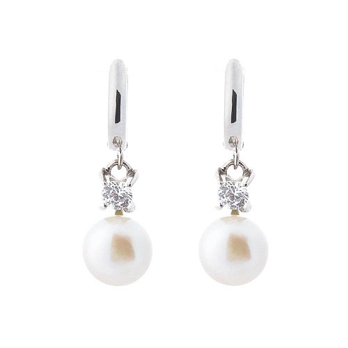 Золоті сережки з культ. прісн. перлами і фіанітами с02893ф