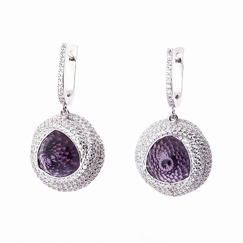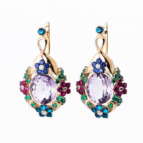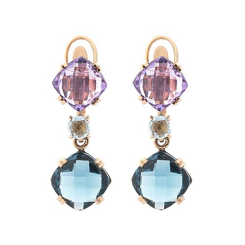 Золоті сережки з аметистом і блакитним топазом 14050430