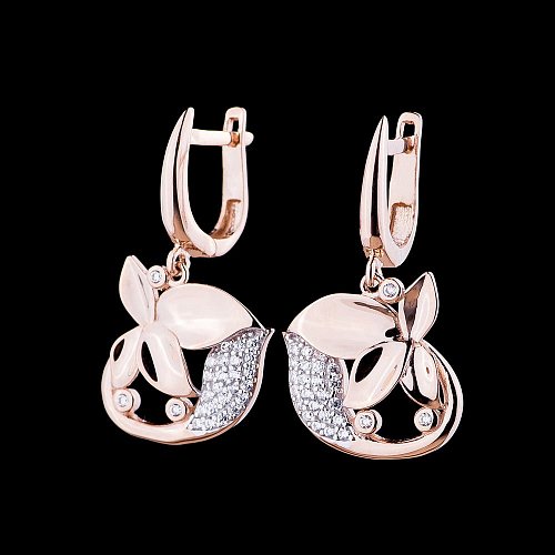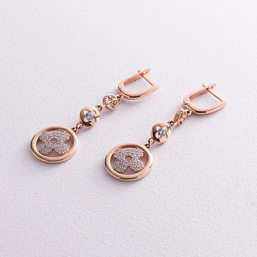 Дитячі золоті сережки "Квіточки" з фіанітами с04849