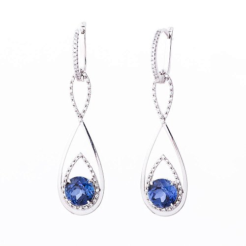 Золоті сережки з сапфірами і фіанітами 14050478сапфир