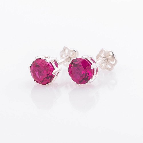 Срібні сережки-пусети з корундом рубіном нано 6 мм 121977