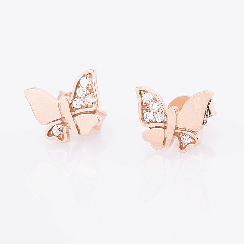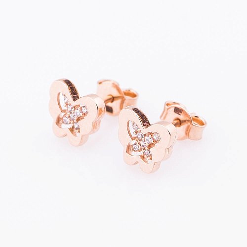 Золоті сережки-пусети "Метелики" з фіанітами с04789