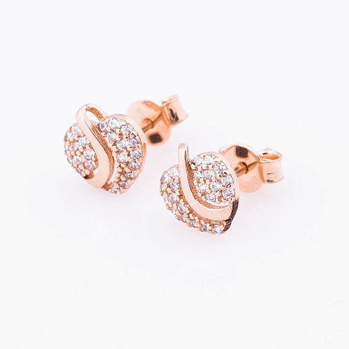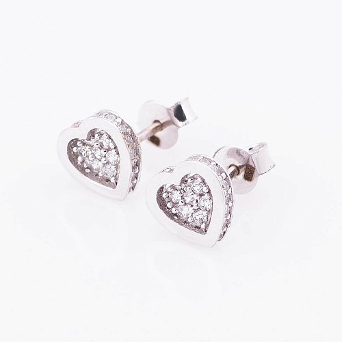 Золоті сережки-пусети "Серця" з фіанітами с04774