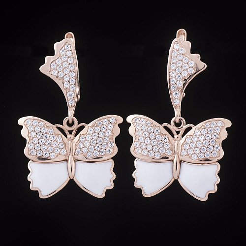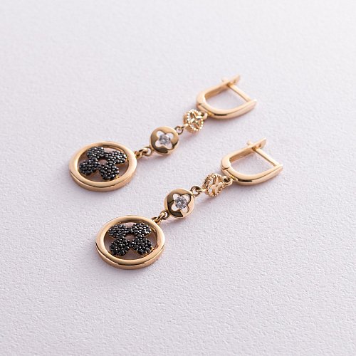 Золоті сережки "Метелики" з емаллю і фіанітами 430883E