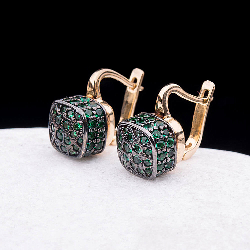 Сережки з синтетичної шпинелью зеленого кольору с06