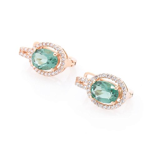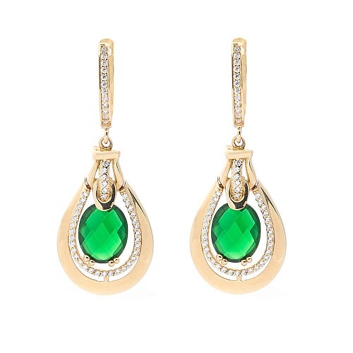 Золоті сережки (празиолит, фіаніти) с04182