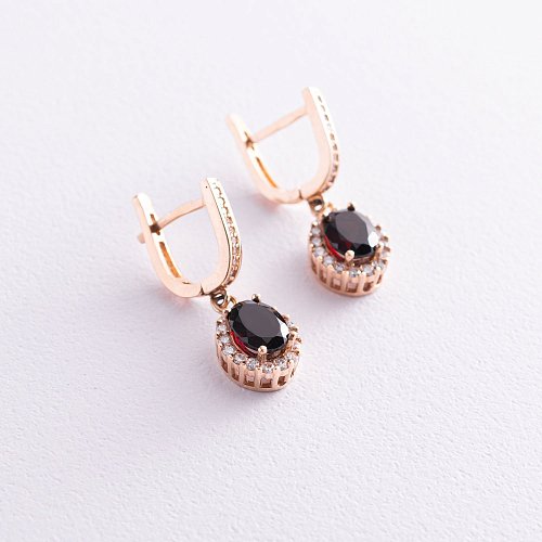 Золоті сережки з піропом (гранатом) і фіанітами с01487п