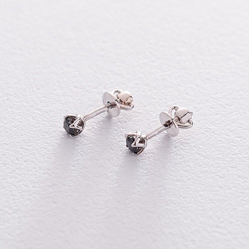 Золоті сережки-пусети з чорними фіанітами с06233ч