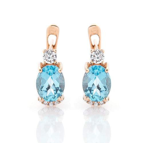 Золоті сережки (блакитний топаз, фіаніти) с04181