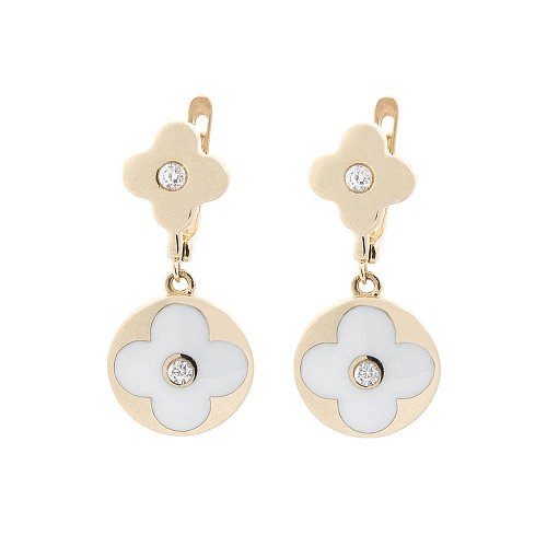 Золоті сережки "Конюшина" (емаль, фіаніт) с05387