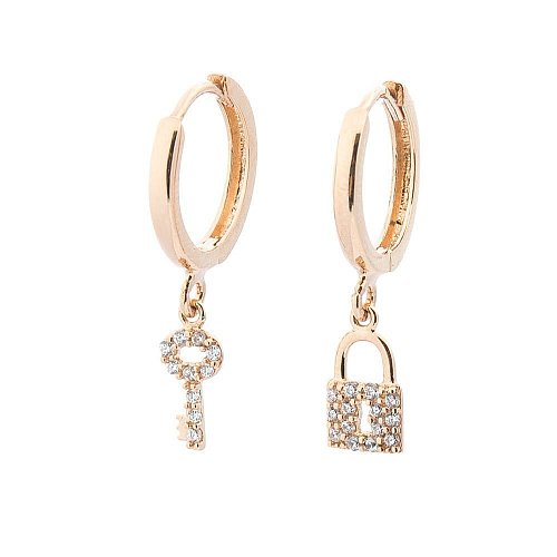 Золоті сережки "Замок-ключик" (фіаніт) с05406