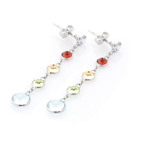 Золоті сережки (аметист, цитрин, уваровит, піроп, блакитний топаз) сб0143sp