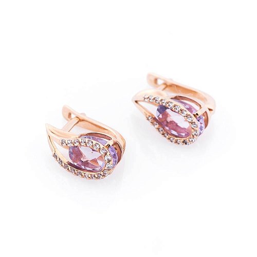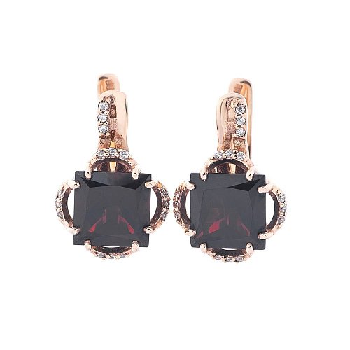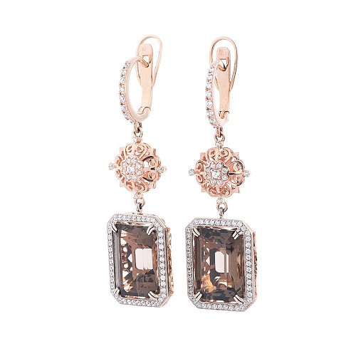 Золоті сережки з раухтопазом і фіанітами 14048502