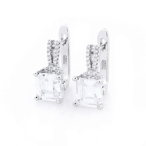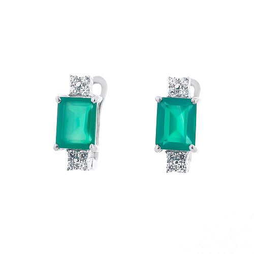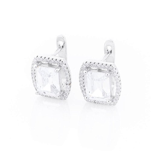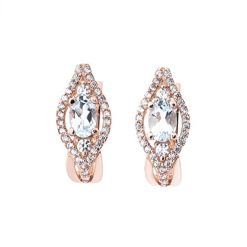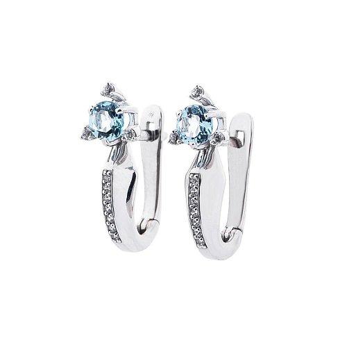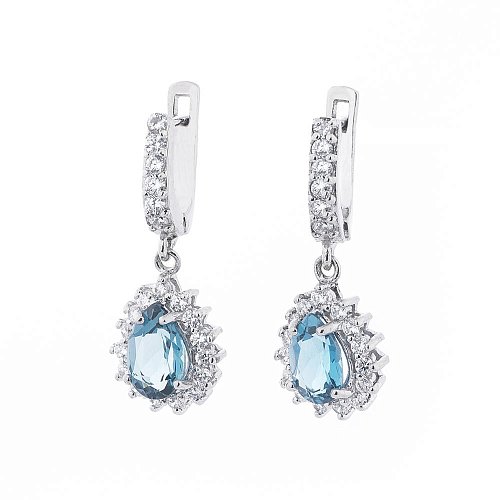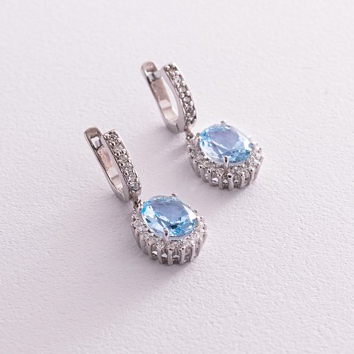 Срібні сережки з блакитним топазом і фіанітами 121460