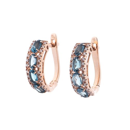 Золоті сережки з Лондон топазом і фіанітами 14052586