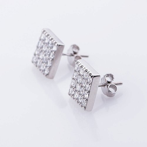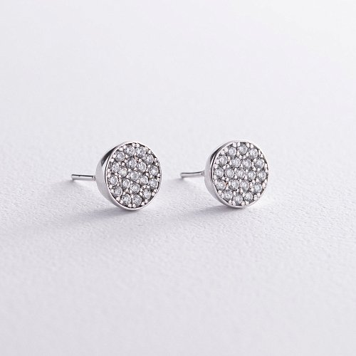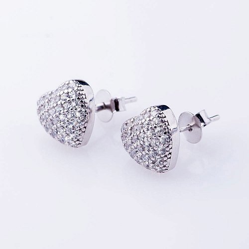 Срібні сережки-пусети "Серце з фіанітами" 121907