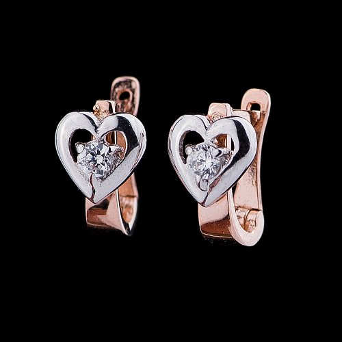 Золоті сережки "Сердечка" (фіаніти) с02375