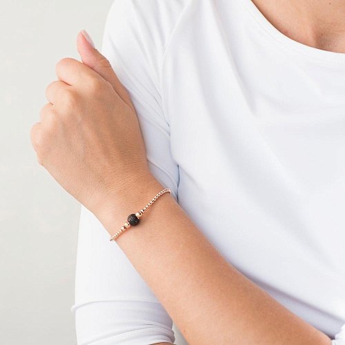 Золотий браслет "Кульки" (чорні фіаніти) б03590
