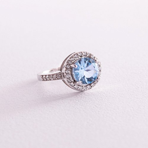 Срібна каблучка з блакитним топазом і фіанітами 111430