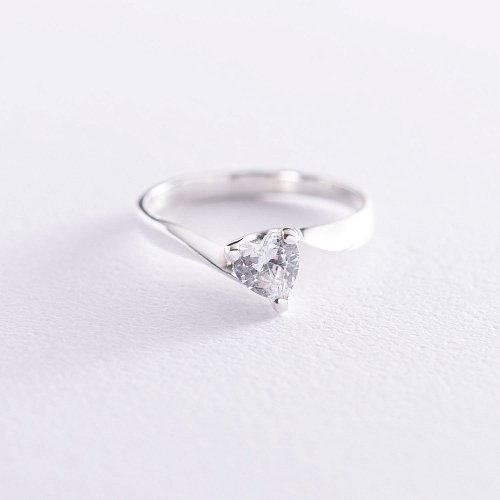 Срібна заручальна каблучка "Фіаніт в формі серця" 111938