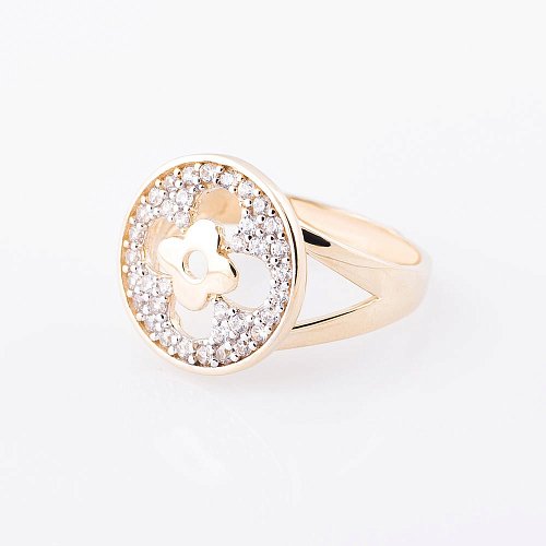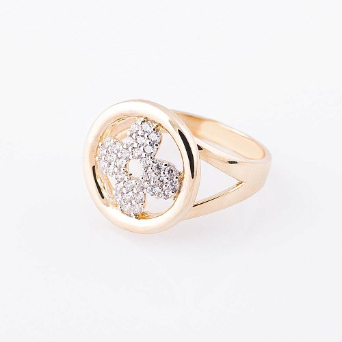 Золота каблучка "Квіточки-серце-конюшина" з фіанітами к05198