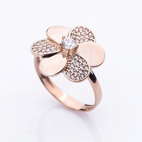 Золота каблучка "Квіточка" з фіанітами к04953