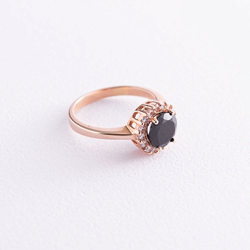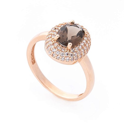 Золота каблучка (димчастий кварц, фіаніти) к02120