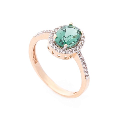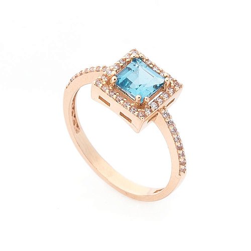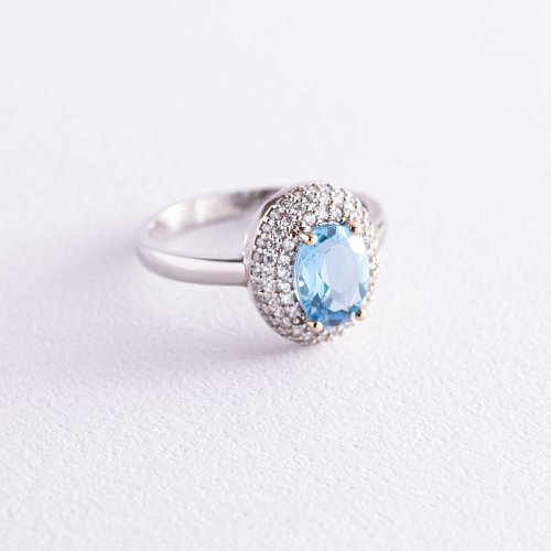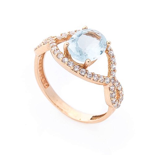 Золота каблучка з блакитним топазом і фіанітами к05082