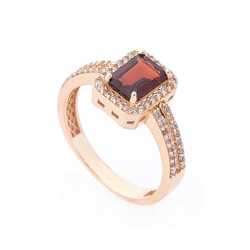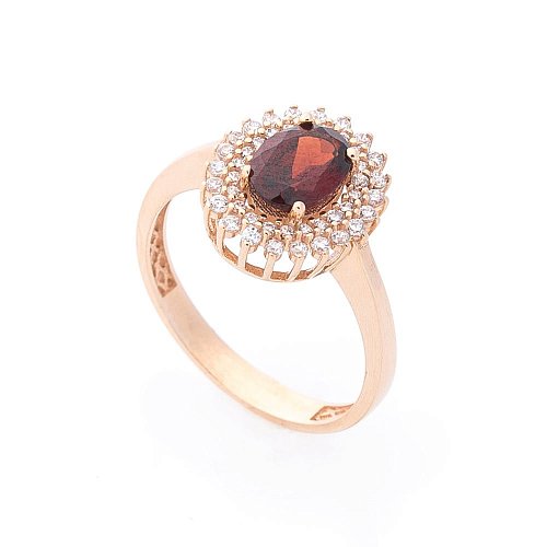 Золота каблучка з піропом (гранатом) і фіанітами к05078