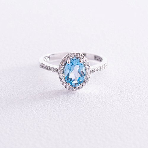 Золота каблучка з блакитним топазом і фіанітами к02371т