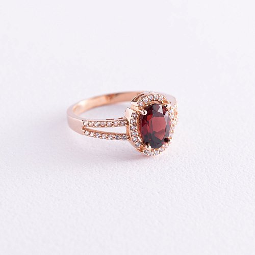 Золота каблучка з піропом (гранатом) і фіанітами к02124п