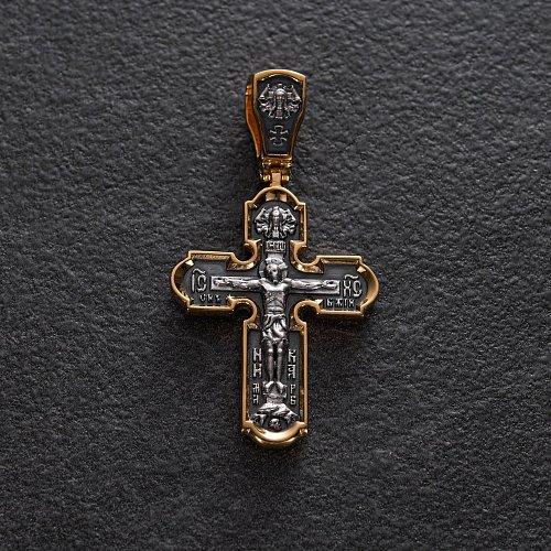 Срібний хрест "Розп'яття Христове. Ікона Божої Матері" з позолотою 132301