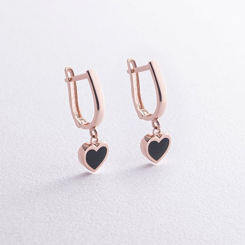 Сережки "Сердечки" в червоному золоті (емаль) с07468