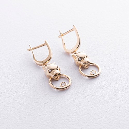 Сережки "Пантери" в жовтому золоті (фіаніти) с07472