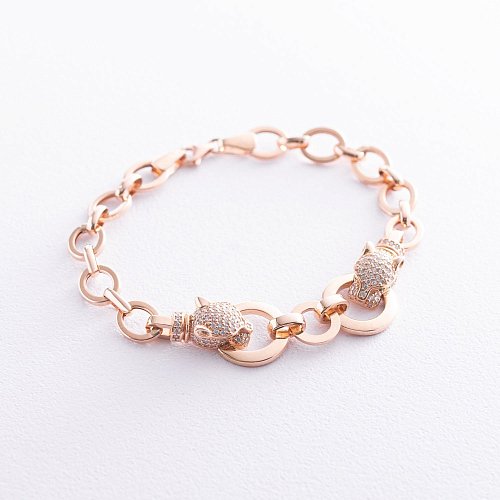 Срібний браслет "Конюшина" з перламутром і фіанітом 141201