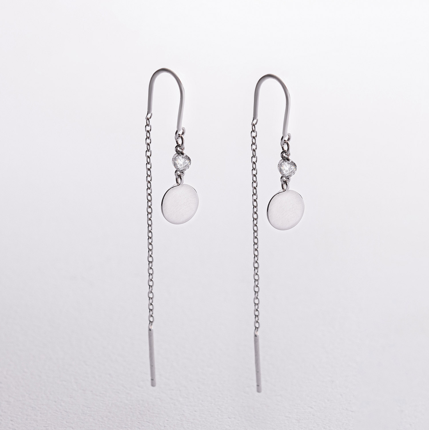 Срібні сережки-протяжки "Монетки" (фіаніти)
