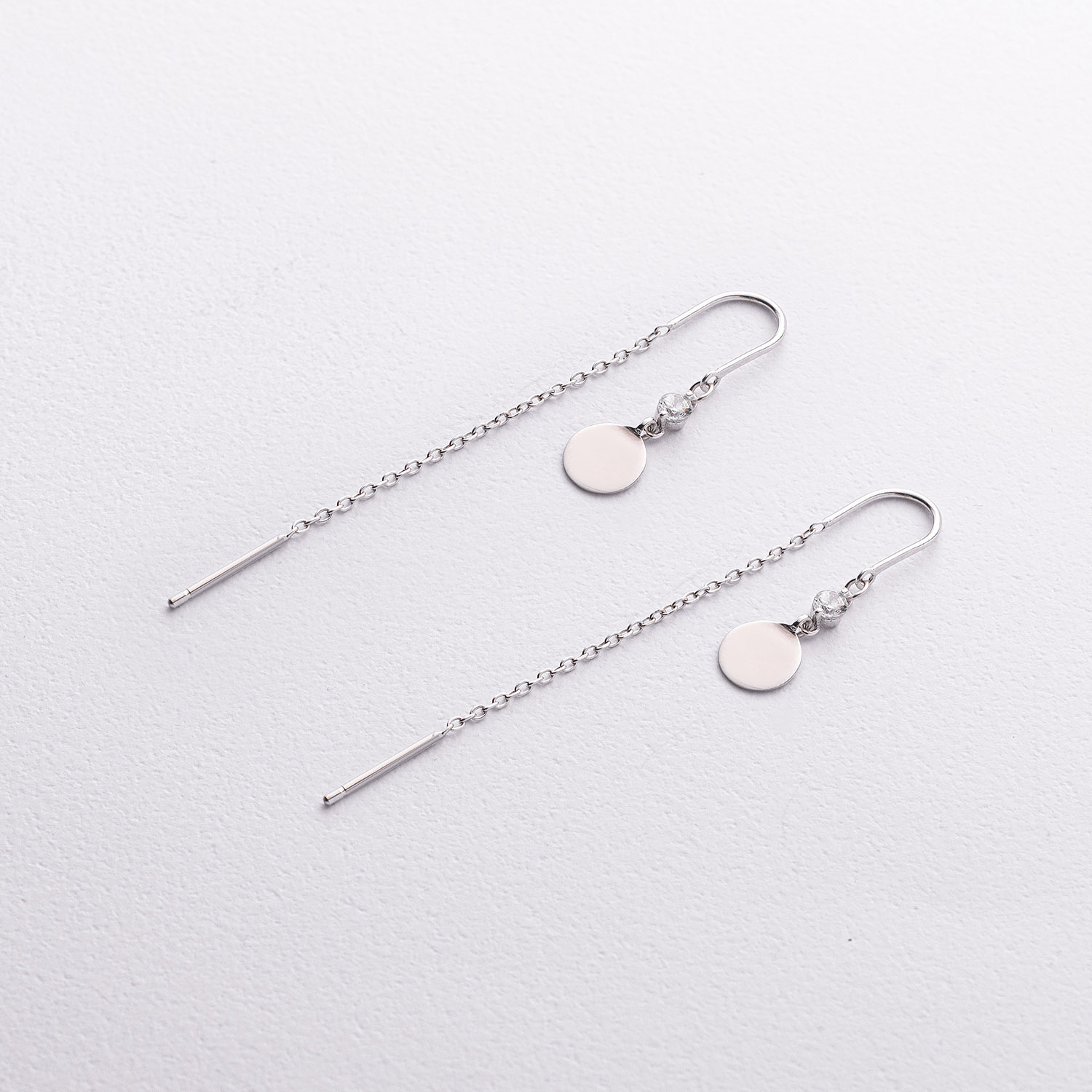 Срібні сережки-протяжки "Монетки" (фіаніти) 12000
