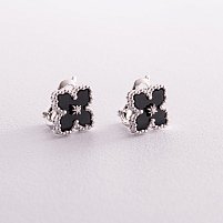 Срібні висячі сережки з чорними каменями 123153 от ювелирного магазина Оникс - 1