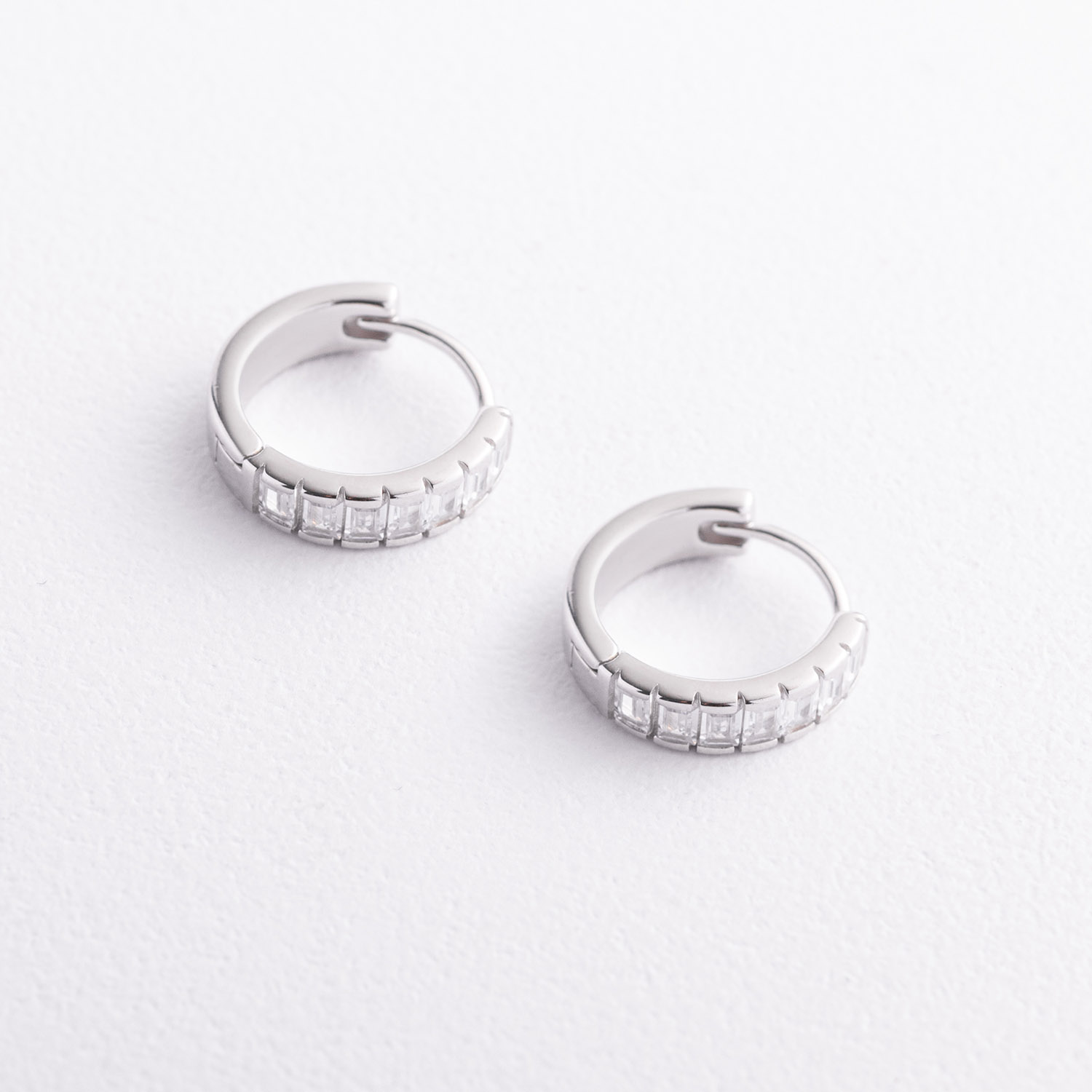 Срібні сережки - кільця з фіанітами 123557 от ювелирного магазина Оникс - 1