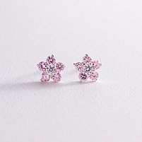 Срібні дитячі сережки "Квіточки" з фіанітами