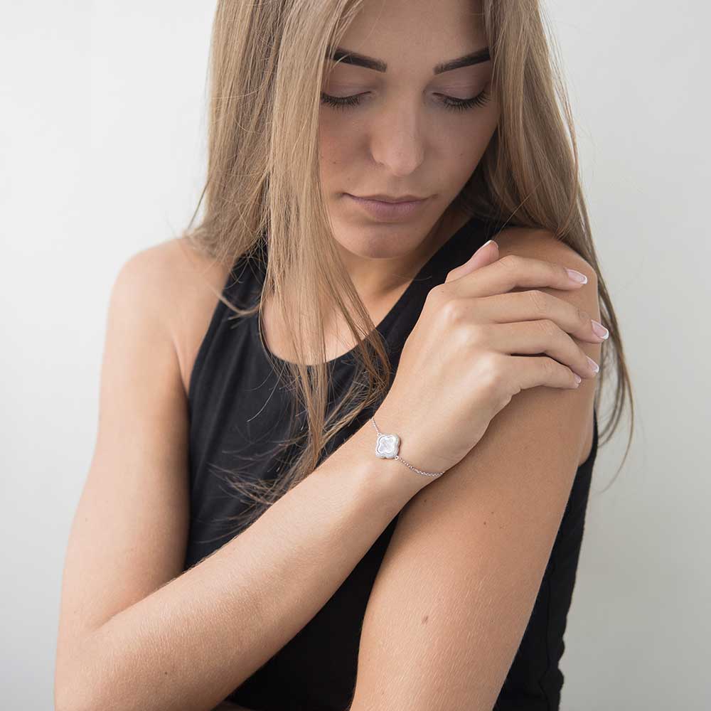 Ексклюзивний срібний браслет "Конюшина" з фіанітами
