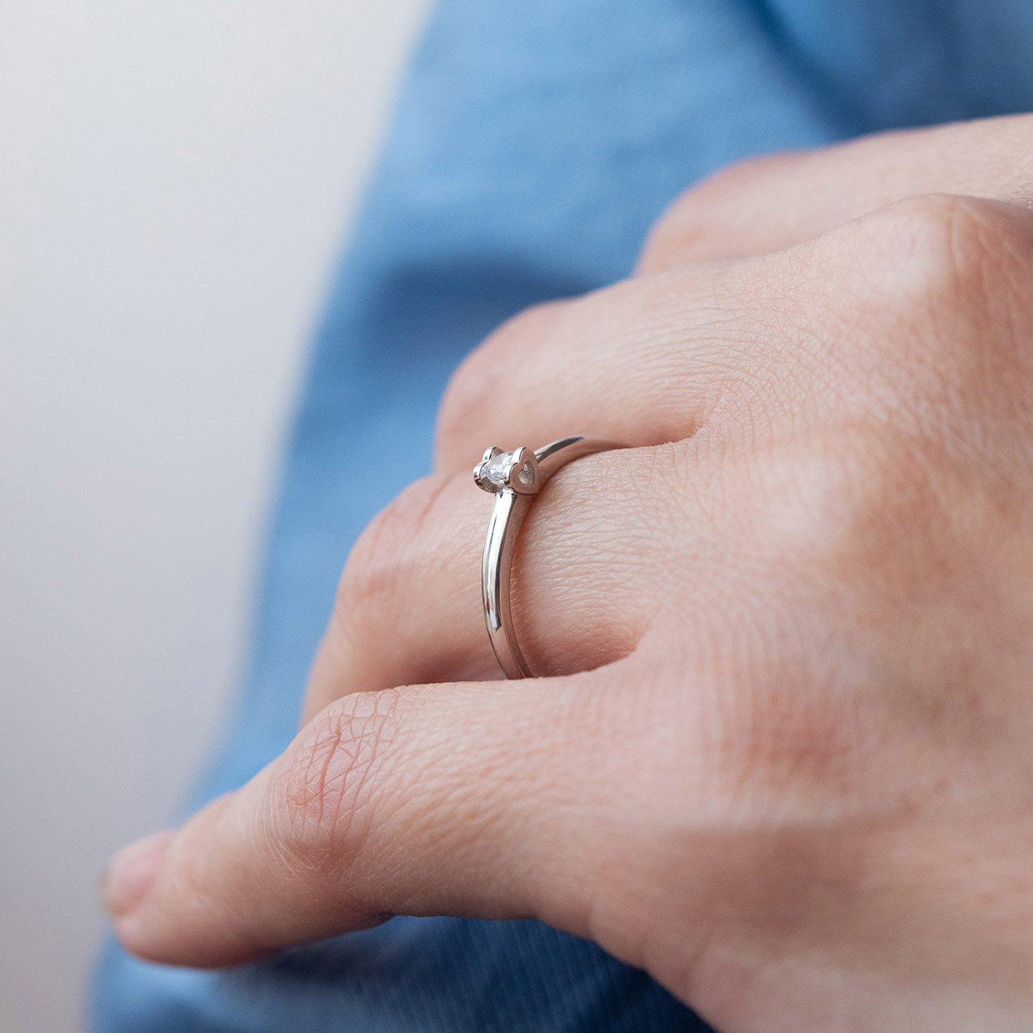 Срібна каблучка "Сердечко" з фіанітом