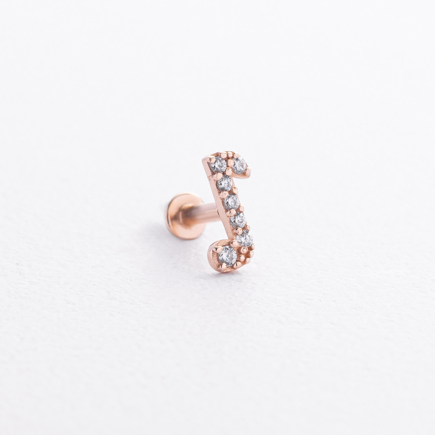 Одиночна золота сережка "Нота" в хрящ вушка (фіаніти)