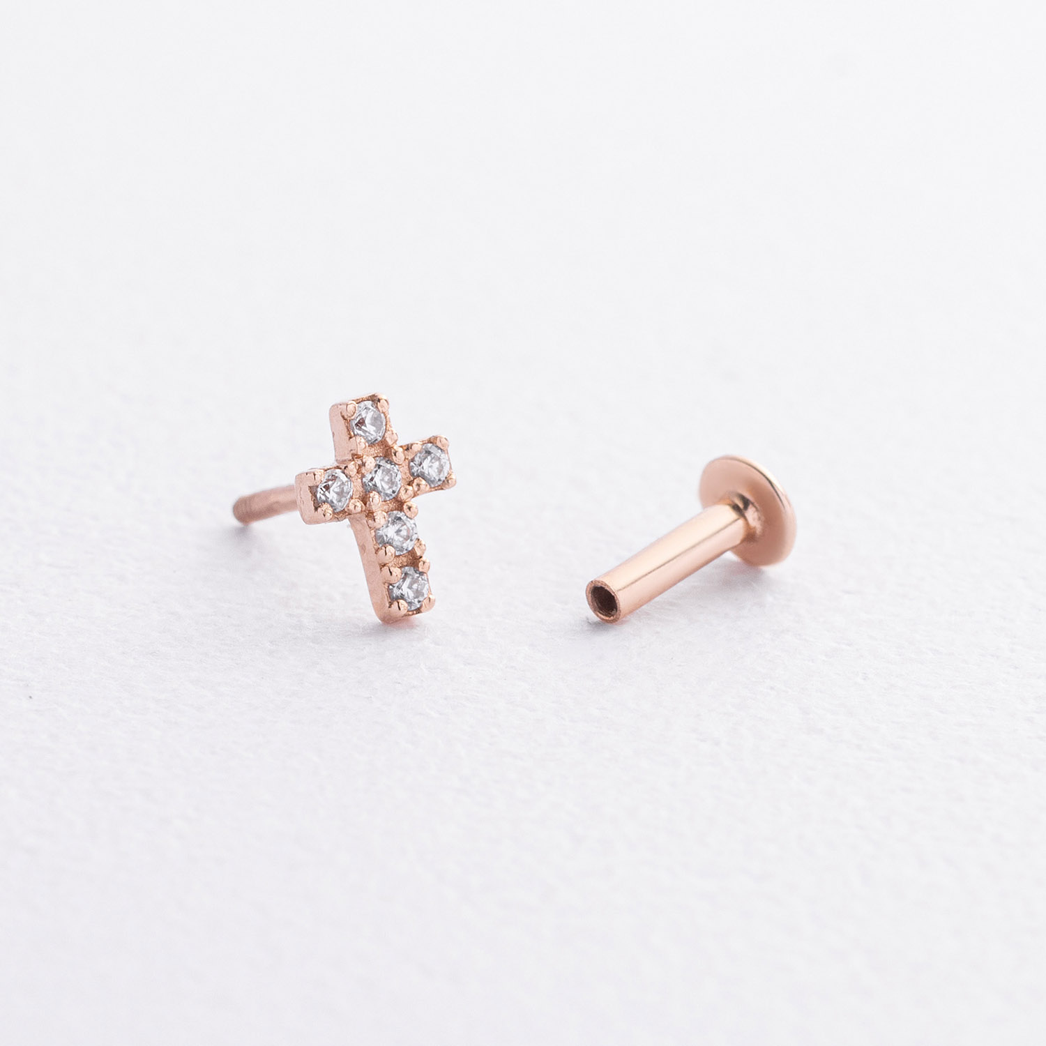 Одиночна золота сережка для хелікса "Хрестик" (фіаніти) 1719ч от ювелирного магазина Оникс - 1